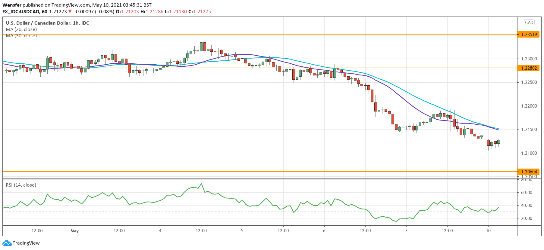 The RSI has dipped into the oversold territory and could trigger some short-covering from intraday players. Though selling into strength is likely to be the motto if the price climbs back towards 1.2280.