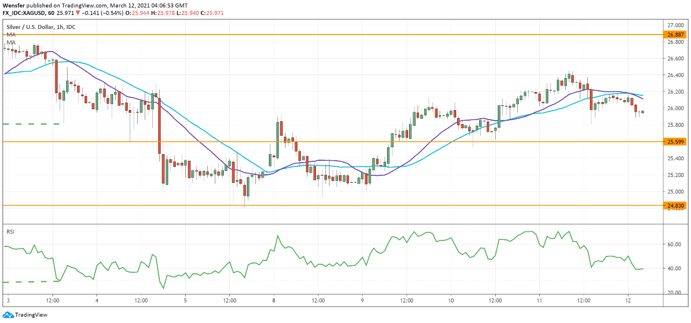 Lower treasury yields have made the non-yielding metal more attractive, right when buyers bid up the price from its daily support level (24.80).