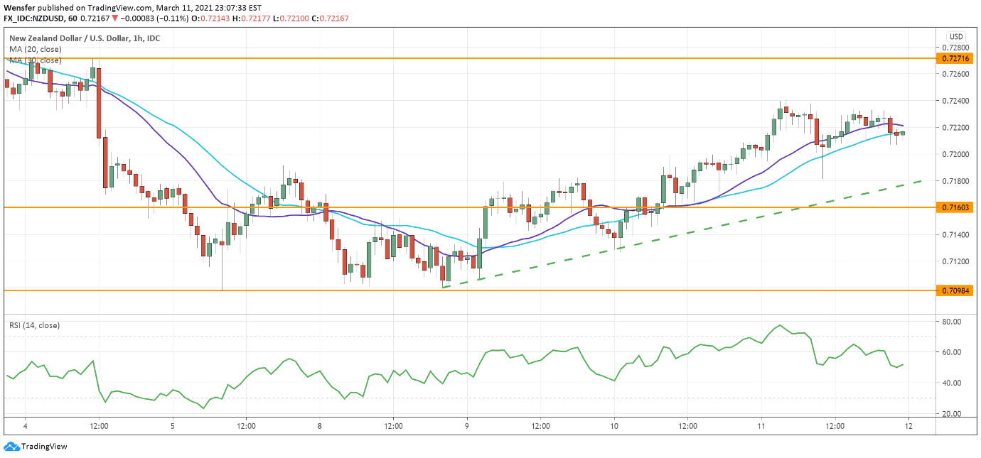 The New Zealand dollar is having its fair share of markets�renewed affection for risk assets. A rebound from the psychological level of 0.7100, a two-month low has brought the pair to its first hurdle: 0.7270 where strong selling pressure could cap the rally.