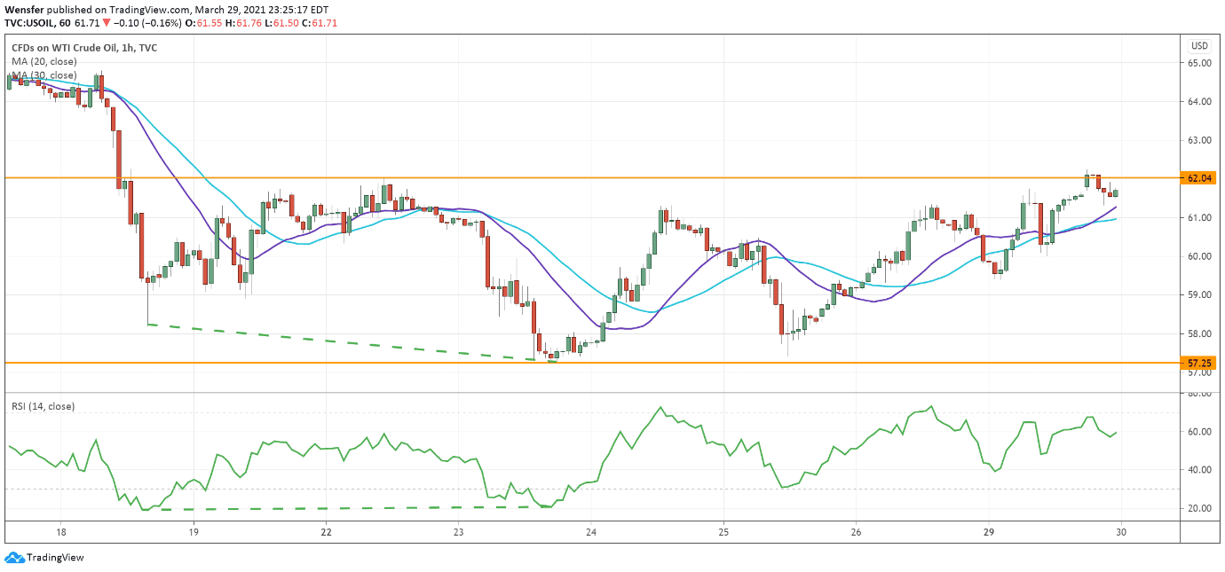 The latest breakout above the psychological level at 62.00 is a confirmation that buyers have regained control and the price could be on its way to 65.