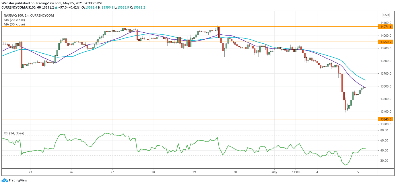 After a halt at 13950 a breach below 13720 triggered a sell-off exacerbated by profit-taking. This would add pressure on traders who are still on the long side. 13340 would be the next support level.