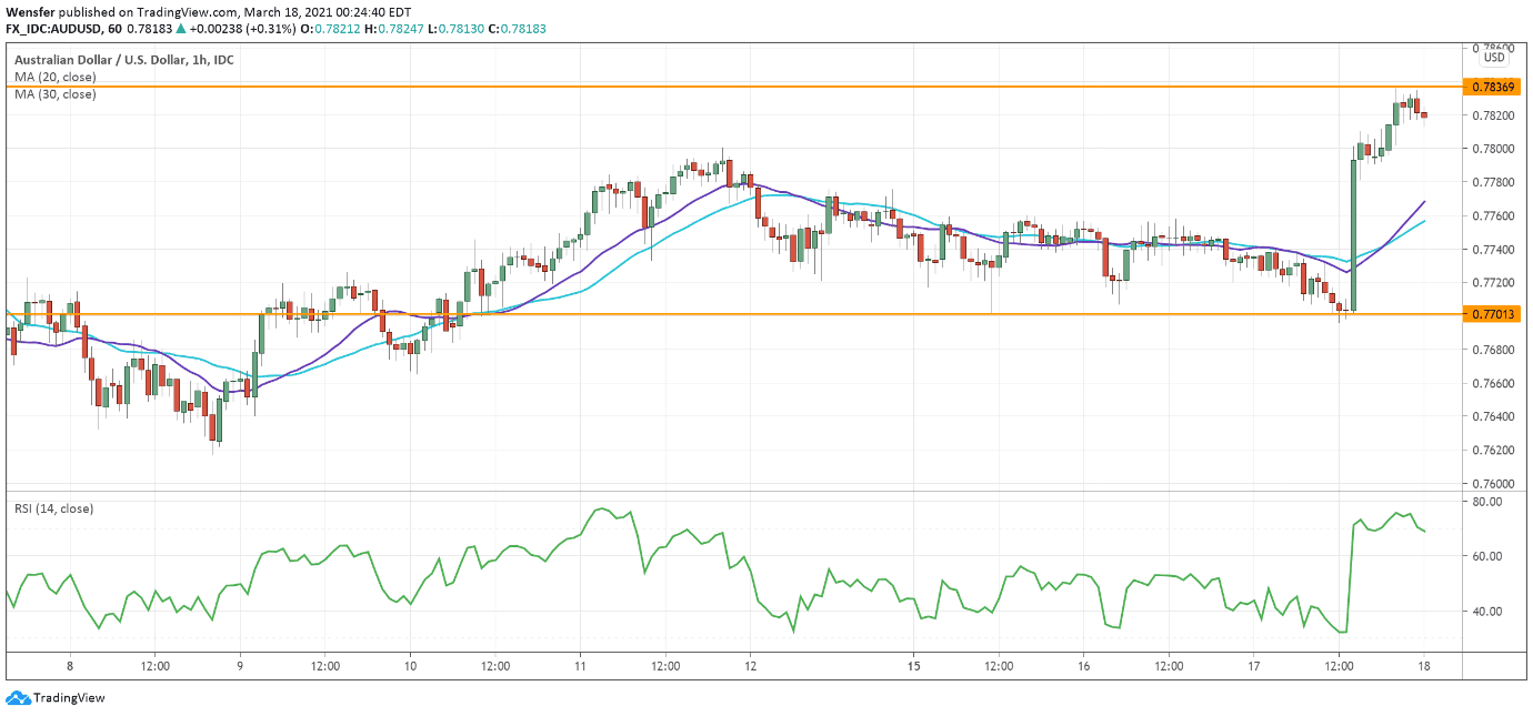 A fall in Australia’s unemployment rate has confirmed the country’s strong fundamentals and put the Aussie back on track. After hitting the supply area around 0.7800, the price action has previously gone sideways for the lack of a catalyst.