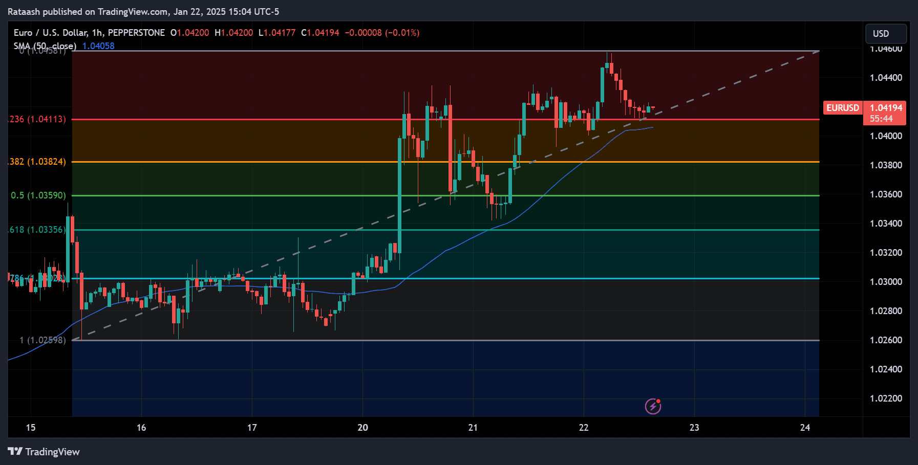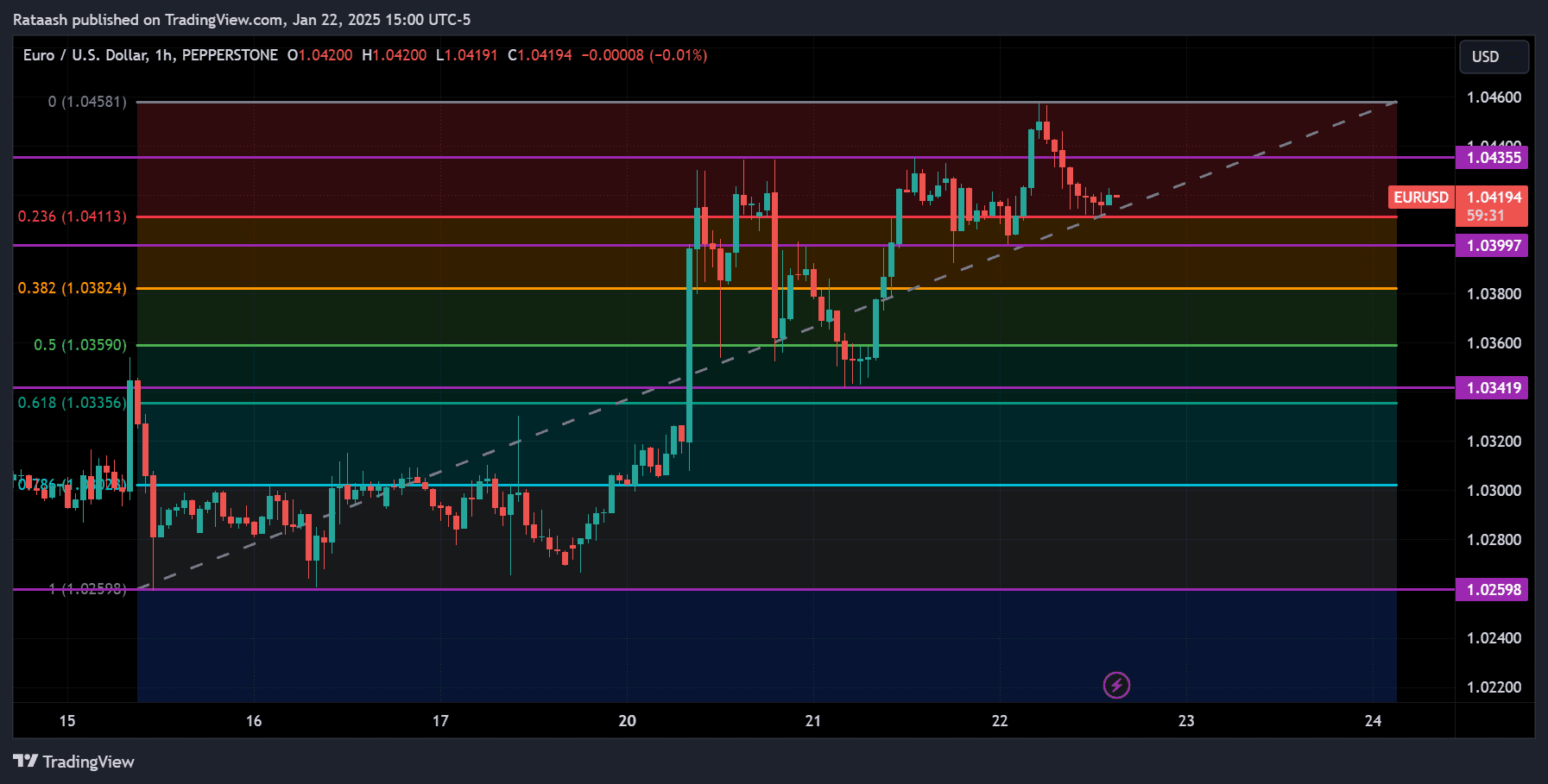 3. Entry Trigger: We enter a long position at 1.0945, anticipating the uptrend will continue from this Fibonacci support.