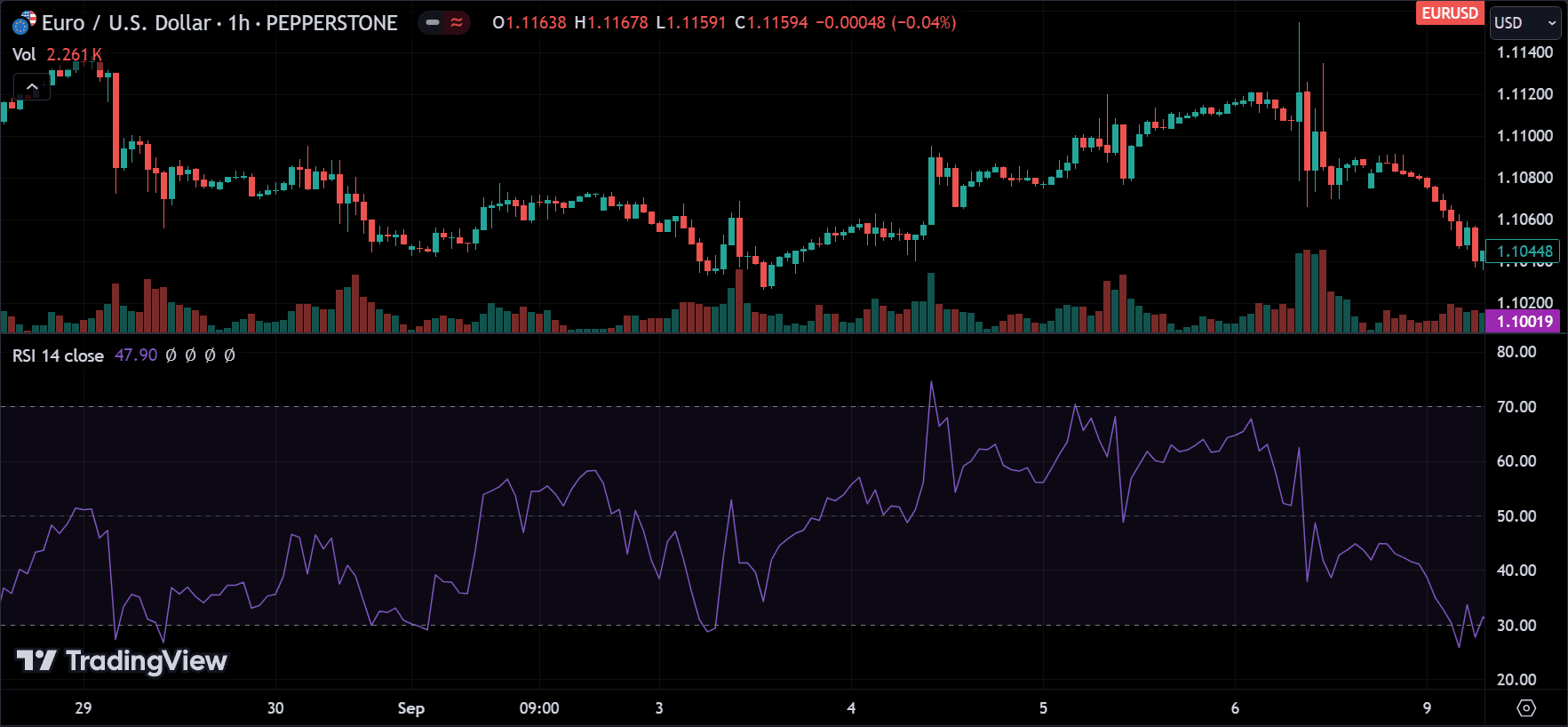 - Oversold: An RSI value below 30 indicates that the asset may be oversold.
