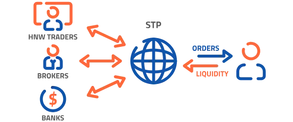 STP (Straight Through Processing) brokers act as intermediaries that send your orders directly to their liquidity providers—banks, hedge funds, or other large brokerages—without a dealing desk in-house.
