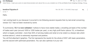 Thank you very much. I have created an EA from your strategy and it is very profitable and great!!!! On short and long term!!! I I have find my EA!!! Thank you!