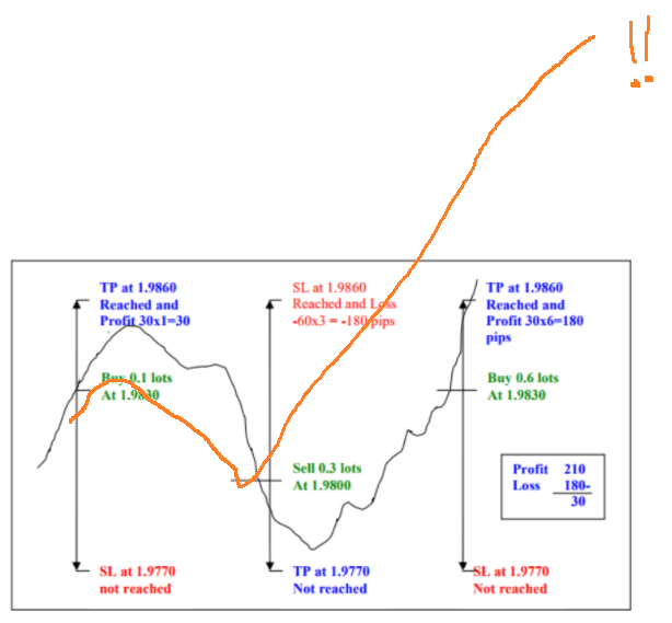 - Every time you have a some loss, increase the buy/sell lots in this number sequence: 1, 3, 6, 12, 24. etc. If you choose your time and price ranges correctly, there should not be a need for this many trades. You should never need more than one to two trade entries if you properly time the market.
