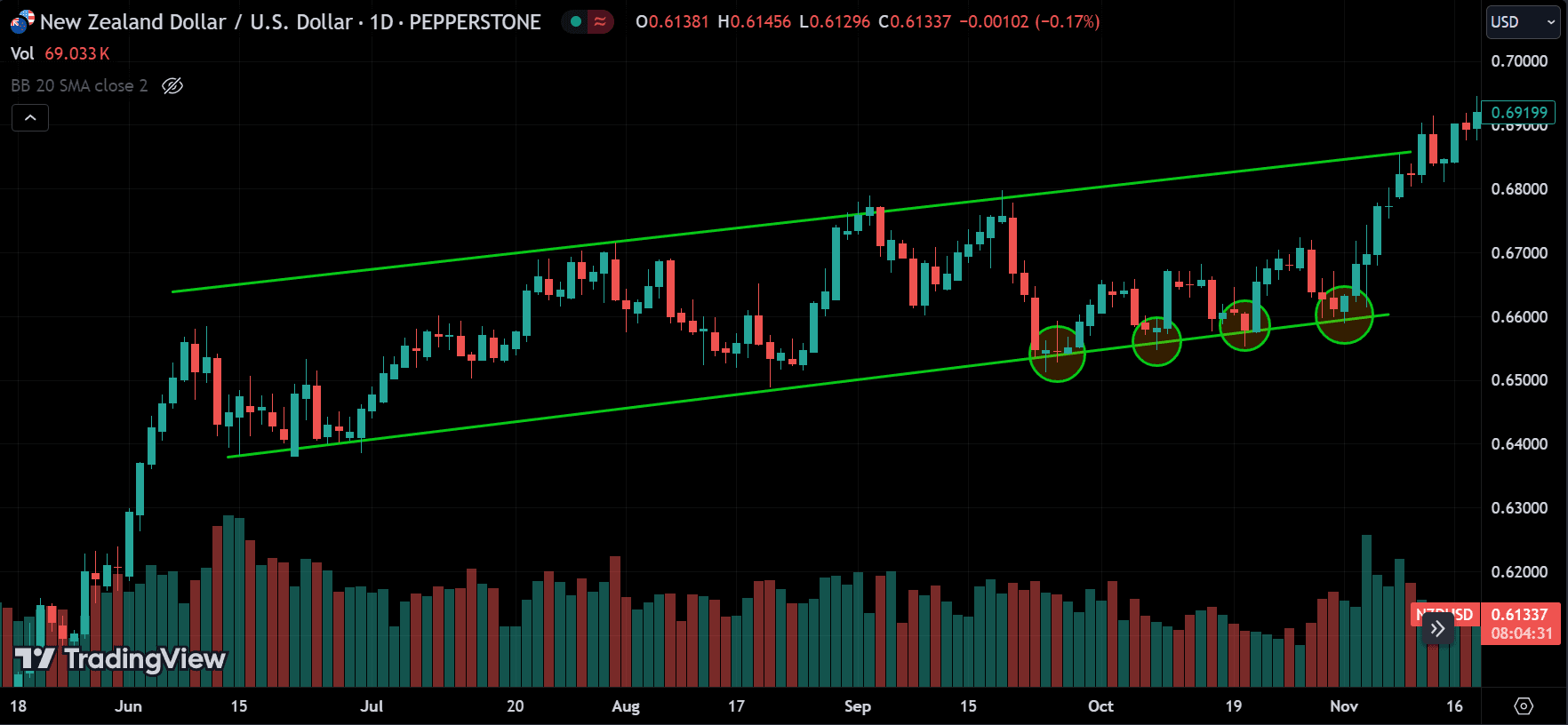 - Buying in an Ascending Channel: Traders typically look to buy when the price is near the lower support line and sell when it approaches the upper resistance line.