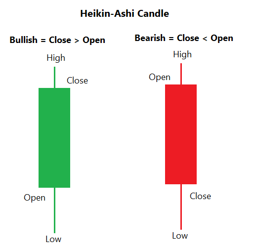 - High/Low – The highest and lowest values in a Heiken Ashi candle are determined using a combination of the current high/low and the calculated open/close.