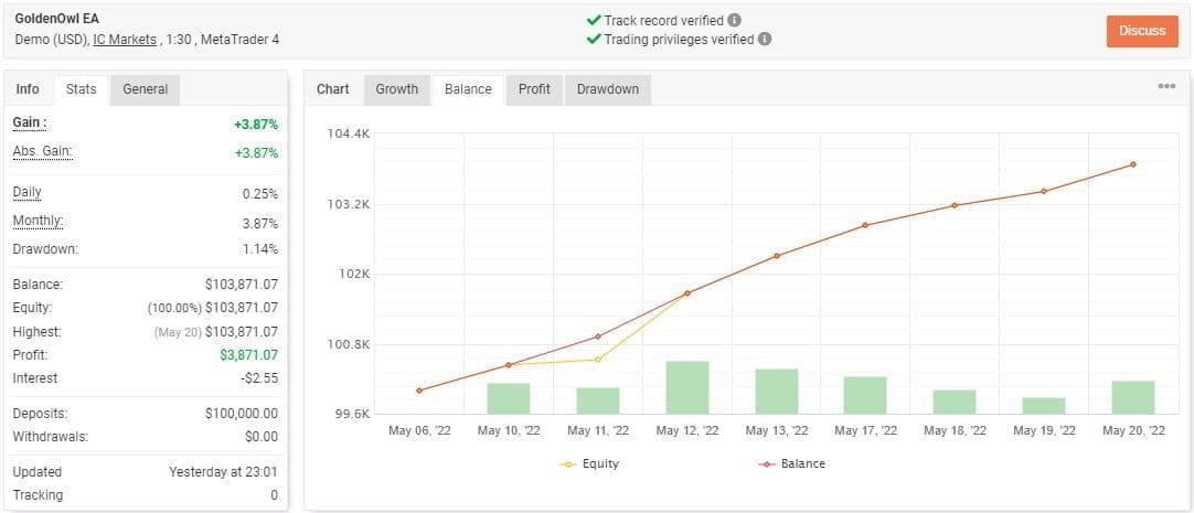 GoldenOwl EA is equipped with an Equity Setting (SL) and a News’s Filter Option, that when ENABLED, this EA will close all trades right before any High Impact News is released. You can use this bot on any account size, just adjust the lot sizes accordingly! For any level of trader, this EA comes with preset for ETCUSD(Ethereum), XAUUSD(Gold) and US30 Including preset for the FTMO funding program, so you do not have to worry about what lot size to apply to your capital.