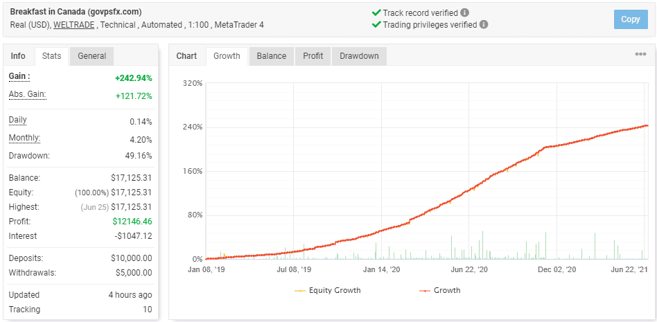 - To reach stable results, the Breakfast in Canada EA should work 24/7. So we Recommend running this free forex EA on a VPS (Reliable and Trusted FOREX VPS �nbsp;FXVM)