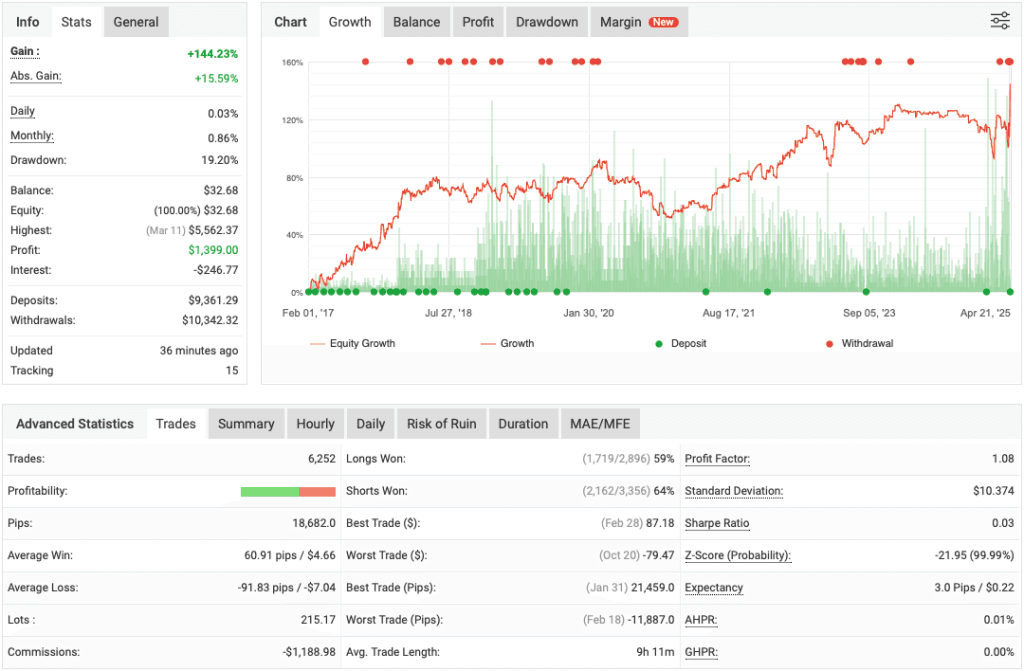 Belkaglazer EA is not an out of the box solution in the conventional sense. Instead, it acts more like a robust framework for building customized algorithms. This depth can be valuable for traders with experience in strategy building and optimization. However, for those unfamiliar with the underlying logic of algorithmic trading, particularly in the areas of signal generation, model selection, and backtesting, the EA’s learning curve may be steep.