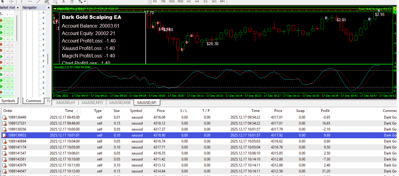 Dark Gold EA is an Gold Scalping Expert Advisor designed to execute scalping strategies on several financial instruments, including Gold, Bitcoin, EURUSD, and GBPUSD. This EA operates within the MT4 trading environment and is aimed at traders interested in either trend following or counter trend strategies.