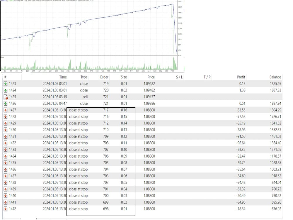 After a Long time of using this strategy, Blowing your account is inevitable. However, with the periodic withdrawal of investments, the probability theory works in our favor. After the initial investment is withdrawn, the dangerous martingale strategy becomes break-even and highly profitable.