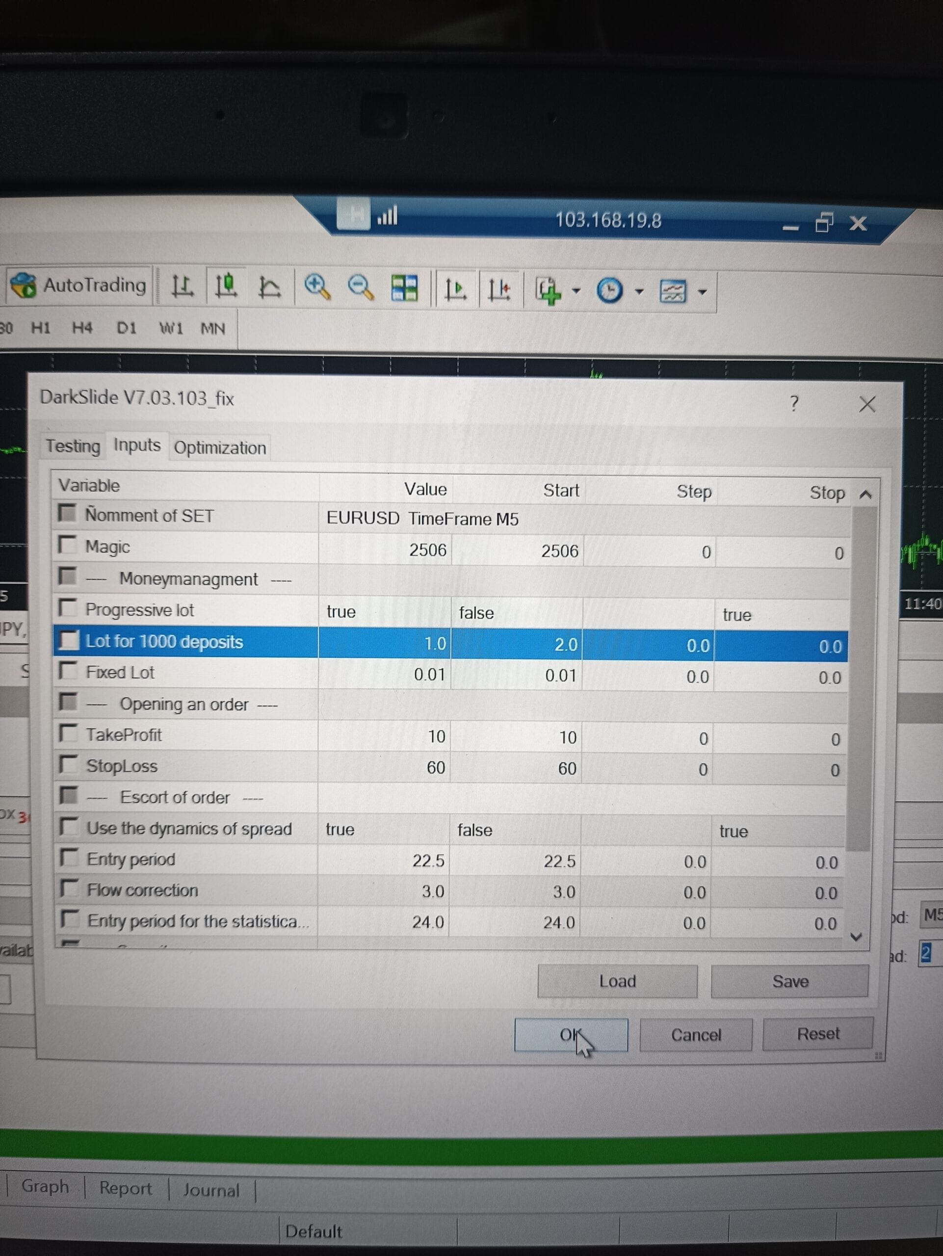 If the DarkSlide doesn’t open trades lower “Lot for 1000 deposits“