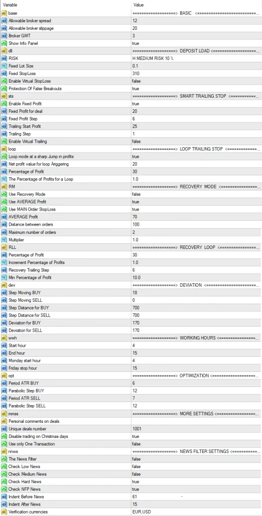 - Work Best On EURUSD, GBPUSD, USDJPY, SPX500, DAX30, GOLD( DEFAULT settings are optimized for EURUSD H1 and GMT=3 Broker server time )