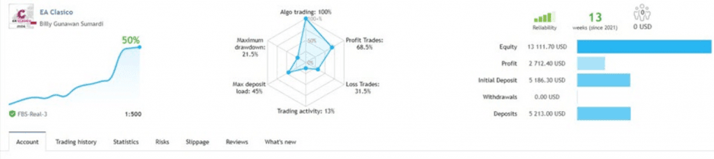 EA CLASICO is a fully automated forex robot usually being sold for 39$. It’s a 100% fully automated mt4 trading CUTSWITCH system Profit monthly 20% â€?30%. Safe trading and consistent profit. Minim DD. Open trades only when the market is truly profitable.