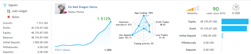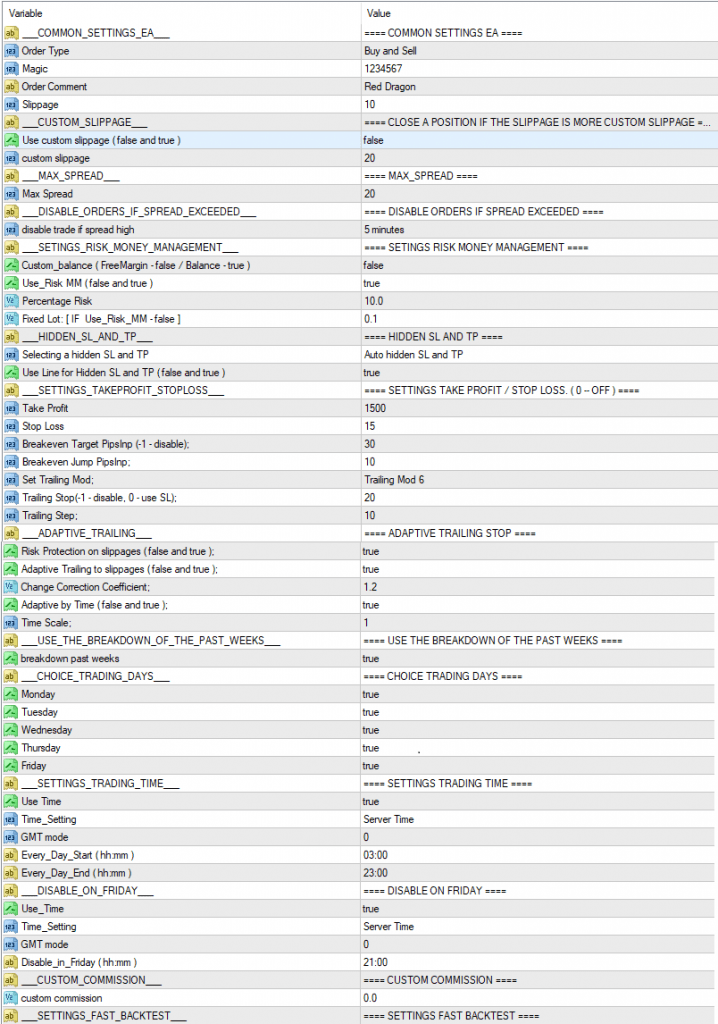 This free forex EA has an information panel that contains a collection of statistics of the algorithm. Red Dragon EA was backtested and optimized using real ticks with 99,9% quality and successfully passed multiple stress testing. It also doesn’t utilize Martingale, GRID, Averaging, and other dangerous strategies.
