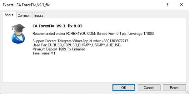ForexFiv EA Uses the advantages of the popular Scalper strategies on the market; Developers claim they have been optimizing this EA for 2 Years. This EA that incorporates some very advance secretive trading algorithms. ForexFiv EA 9.3 also doesn’t use dangerous strategies martingale and headg.