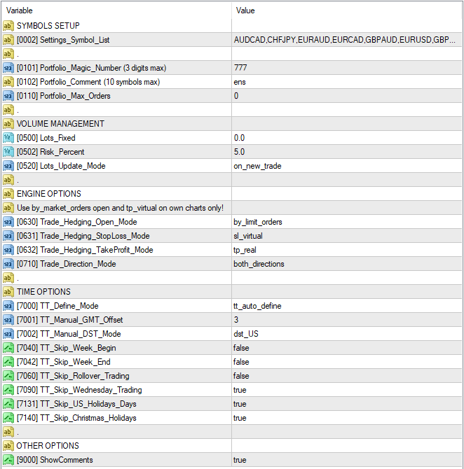 - Settings_Symbol_List �symbol list through comma (The empty value means that Multi Currency Robot will trade on current currency pair only, single pair mode)
