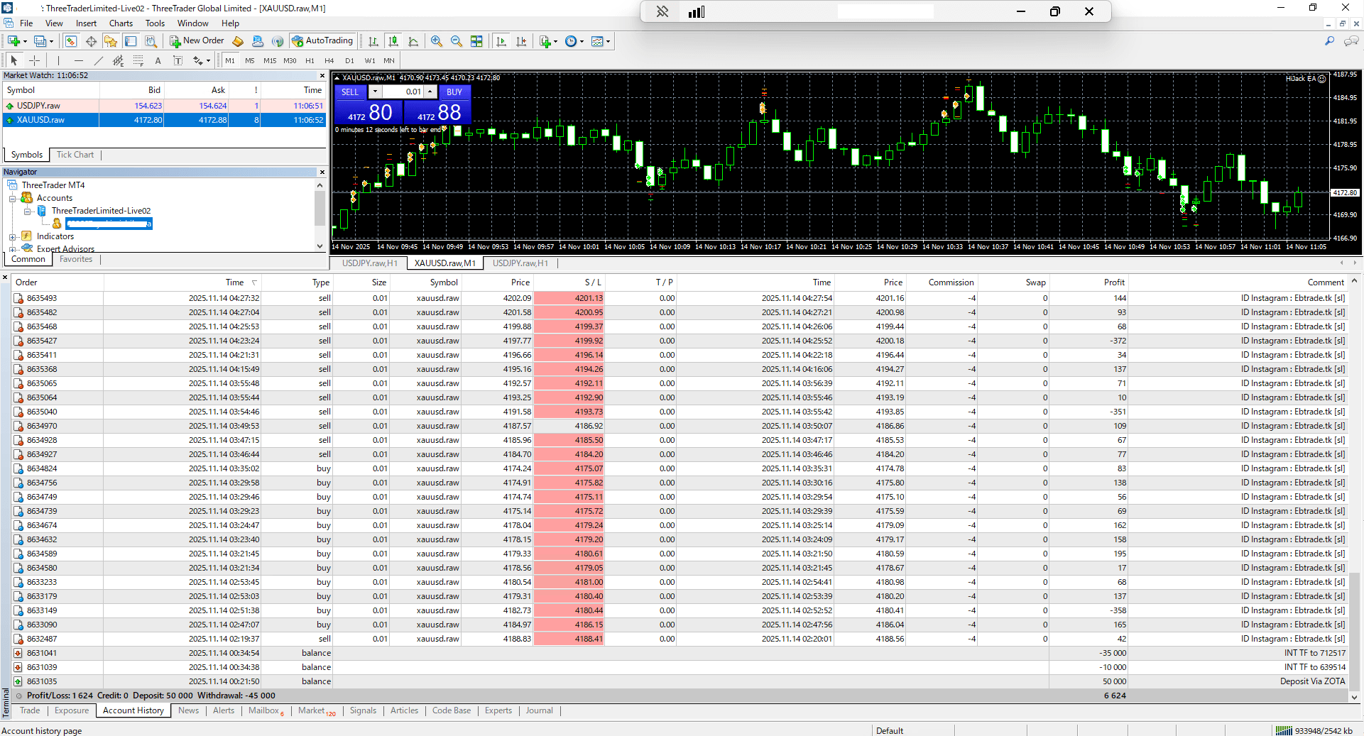 Testing suggests the HiJack EA operates as a fast scalper EA, primarily active during periods of high market volatility. Trades are frequently opened and closed within seconds, often coinciding with market reactions to significant events or news releases. Achieving results mirroring backtest performance will likely be challenging.