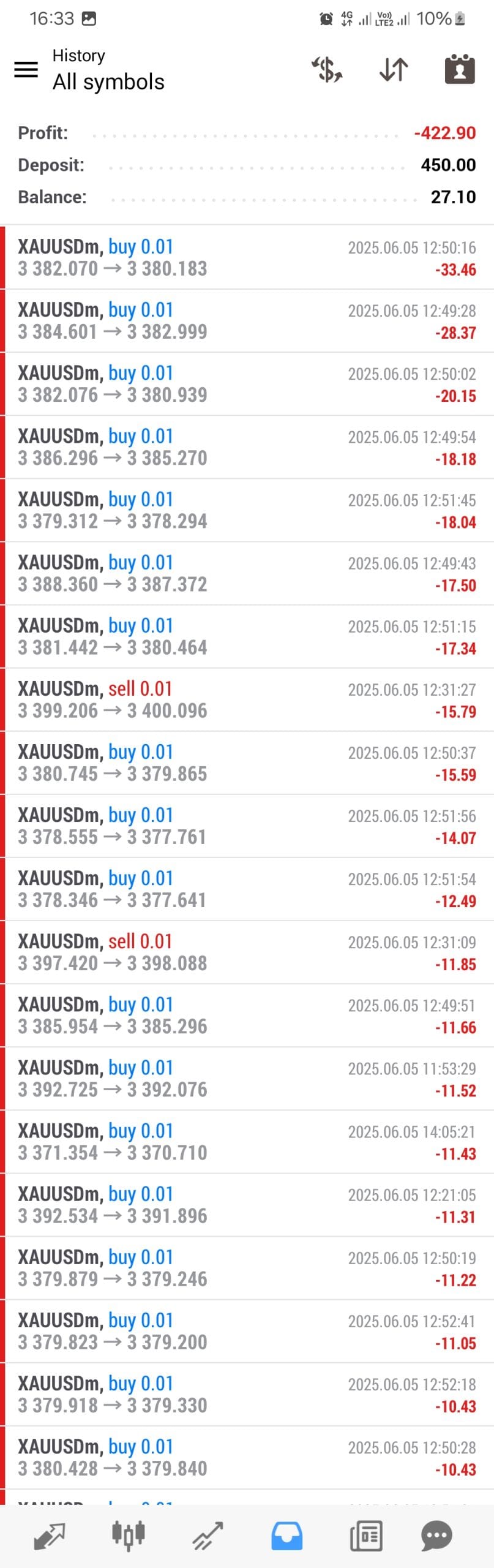 The base currency of this account is MXN or ZAR. The 450 is equal to $26. It is very small account.