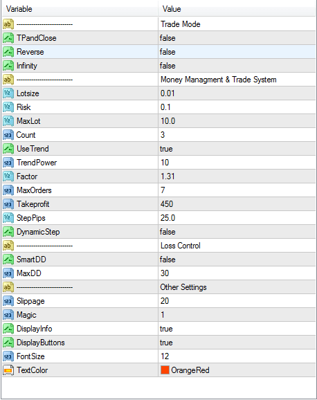 DynamicStep �this parameter enables (TRUE) or disables (FALSE) the dynamic size of the minimum StepPips step; the calculation is carried out according to the formula StepPips = StepPips * order serial number.
