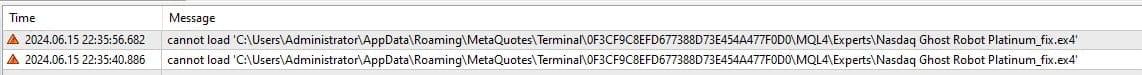 There is error in Expert tab: “cannot load …Nasdaq Ghost Robot Platinum_fix.ex4”