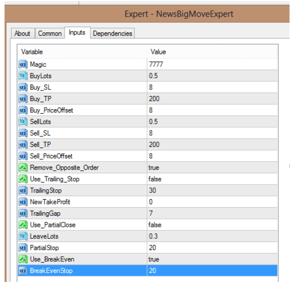 - Use_Breakeven: If set to TRUE. It will set your stop loss of the triggered pending order into entry price once the price moves positively with the number you set in BreakEvenStop.