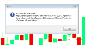 The news filter address is invalid. It seems the “http://ec.forexprostools.com/?columns=exc_currency,exc_importance&importance=1,2,3&calType=week&timeZone=15&lang=1” has changed to “https://ec.forexprostools.com/?columns=exc_currency,exc_importance&importance=1,2,3&calType=week&timeZone=15&lang=1”