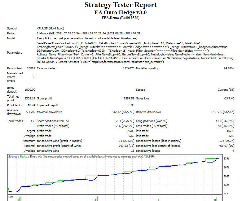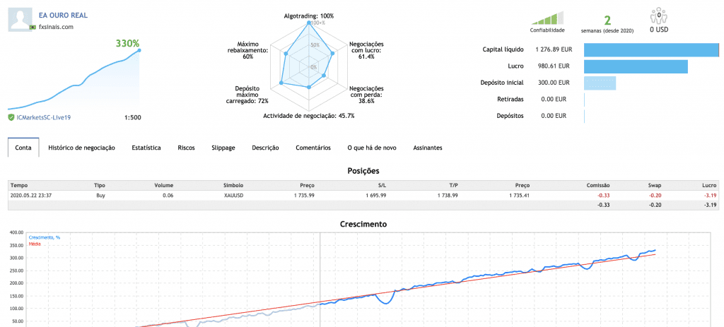 EA OURO HEDGE SCALPING is a fully automated EA usually being sold for 269$. This EA Work based on safe risk management through Hedging strategies. How Much Profit can you make monthly depend on your profit target, your lot size, and your risk value. Still, the developer claims it can profit around 400%(average) monthly without putting your money at risk.