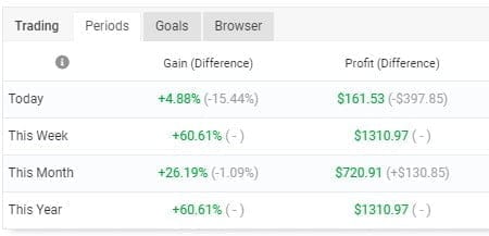 Averaging 4% a day with a DD of 10%. However, before you embark on using EA’s the first rule is that you need to know how to Trade, if you cant trade then don’t run any EA’s, it is not difficult. At some point an EA can go wrong due to market conditions, and you must know how to trade out and handle the systems.