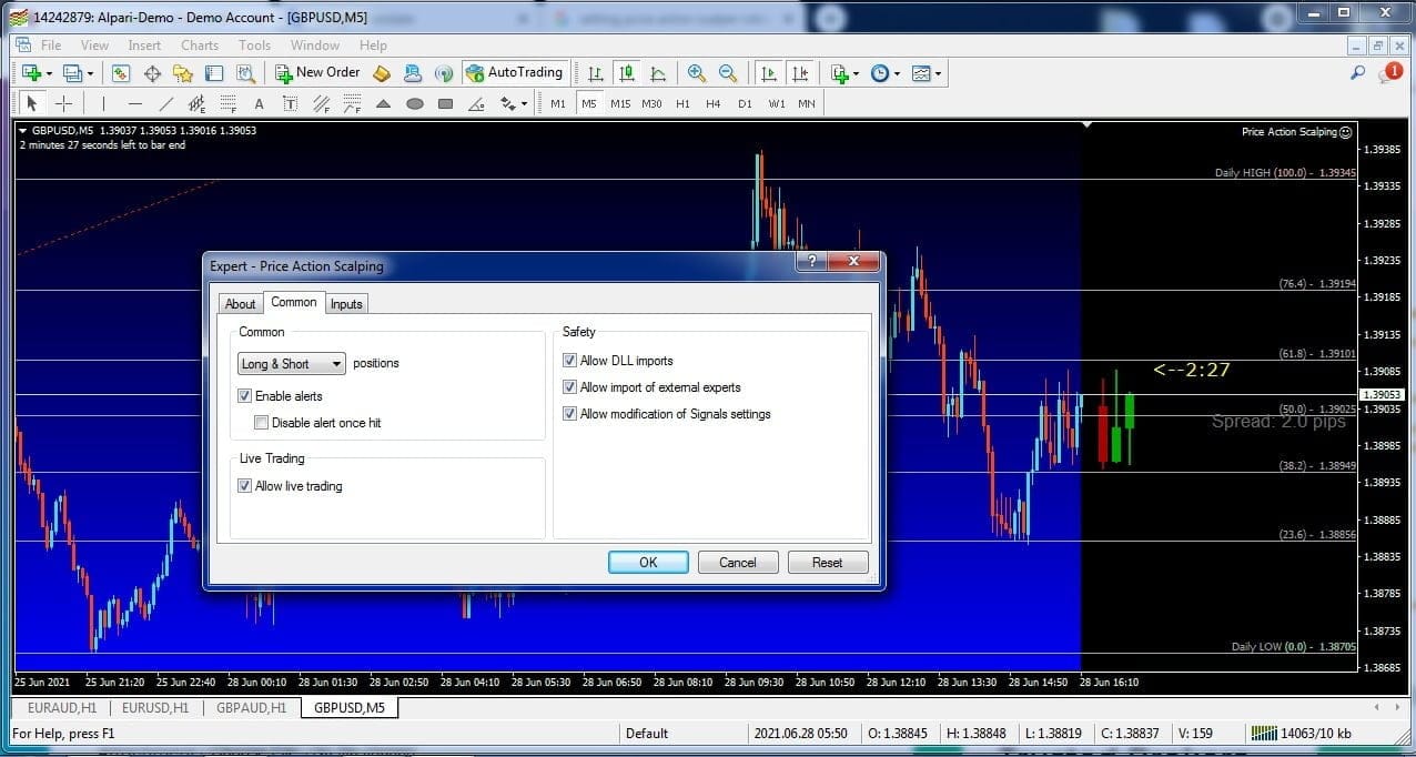 Please test in a demo account first for at least a week. Also, Make yourself familiar with and understand how this Price Action Scalper Robot works, then only use it in a real account.