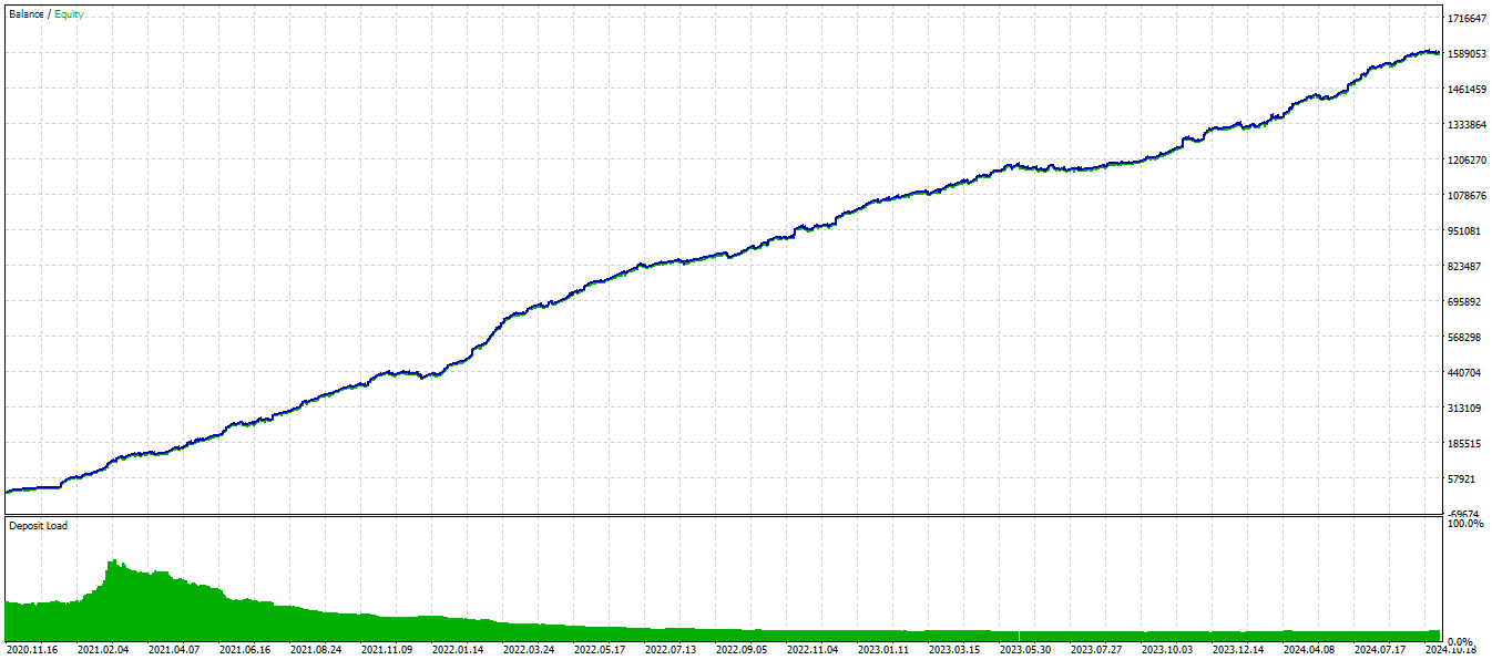 This EA impresses with its profit even on tiny deposits and has a low maximum drawdown when trading. It does not use dangerous trading methods like martingale, grid, etc., and all transactions are always protected by Stop Loss and Take Profit. It can trade with a fixed lot or use an auto lot, automatically increasing the transaction’s size. It doesn’t open more than 2 to 5 trades a week and can go days without trading. Also, This EA doesn’t open more than one trade in the market at a time.