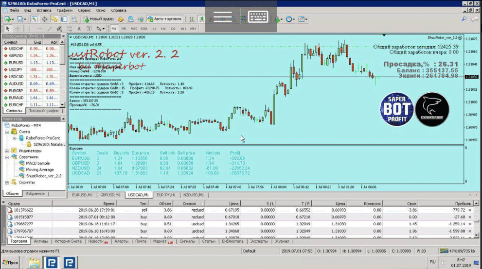 Advisor ShustRobot EA ver.2.2 may be a unique algorithm that uses three strategies to open positions for profit, also as a way of averaging to catch up on losing trades. The algorithm of opening trades is made in order that trades can’t be opened in one direction for all three strategies for one trading instrument (currency pair), which in turn retains a higher level of margin support and makes a profit with the resulting drawdowns. The EA is multi-currency and can work on several currency pairs and different settings.