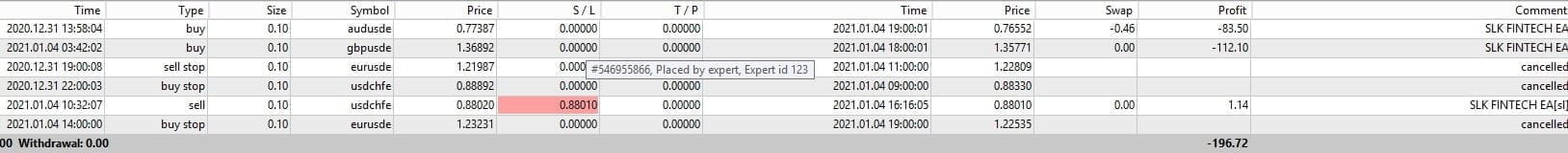 - The developer recommends running this SLK Fintech on multiple pairs at once. since it opens 2-4 trades a week.