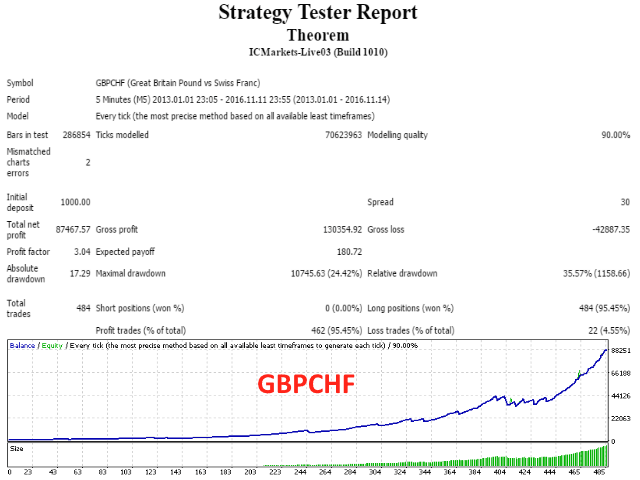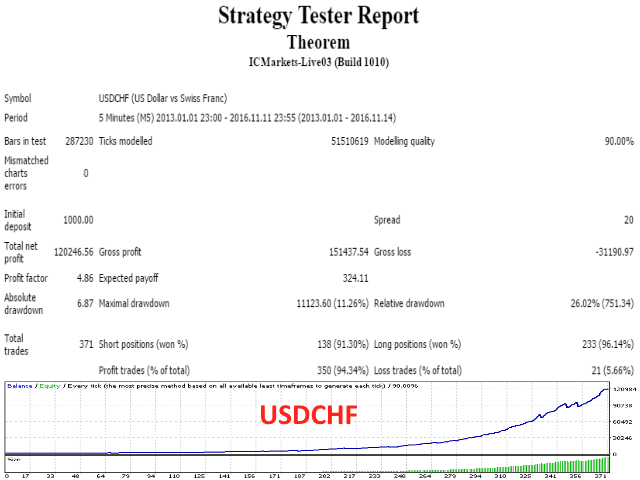 Theorem EA V5 Analyzes the market and auto determines the entry levels supported the finding of price fluctuations in quiet periods. The direction of the trade is decided by the EA’s clever adaptive system which has a profit ratio of over %90.