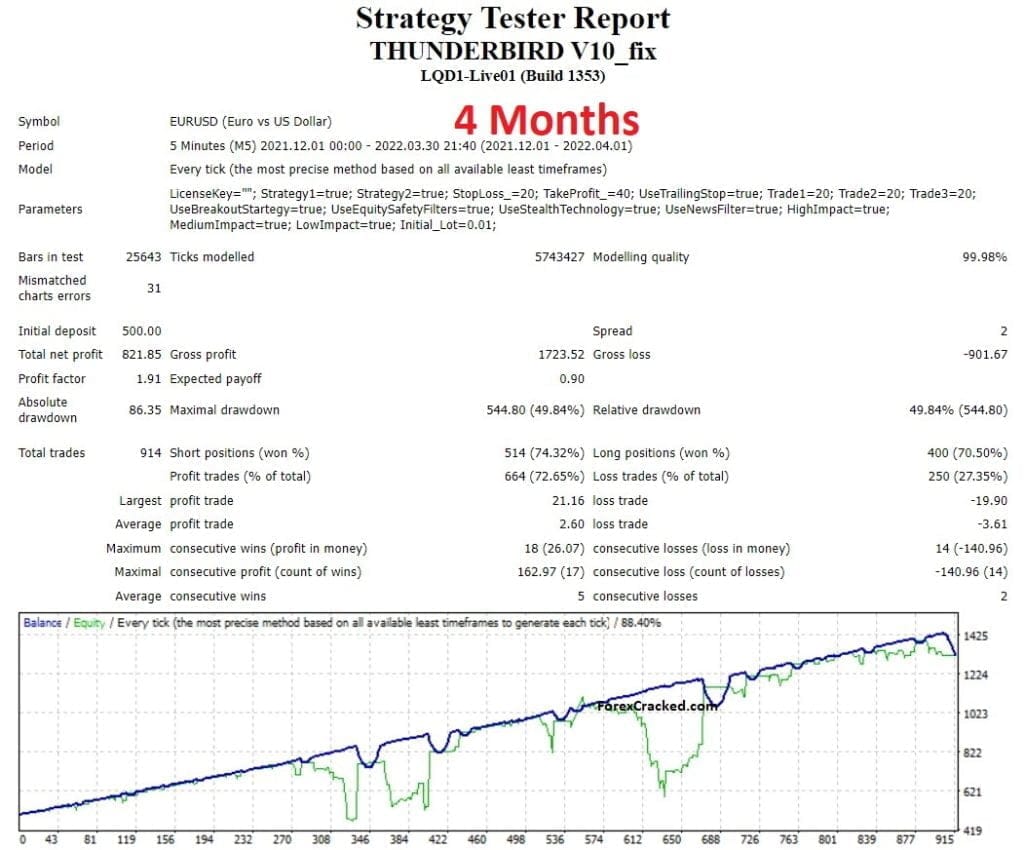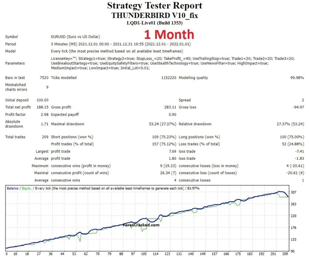 You may hear this Thunderbird EA and see the people’s profitability using this EA. But you may experience the other way. Here you can download this EA for free and test to your account. And you can find out the truth about this EA. If you like you can test other EA like MiEA or Babe Blade Algo EA.