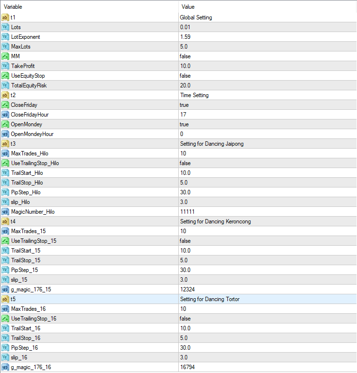- TrailStop_Hilo – the size of a traling of 1 strategy