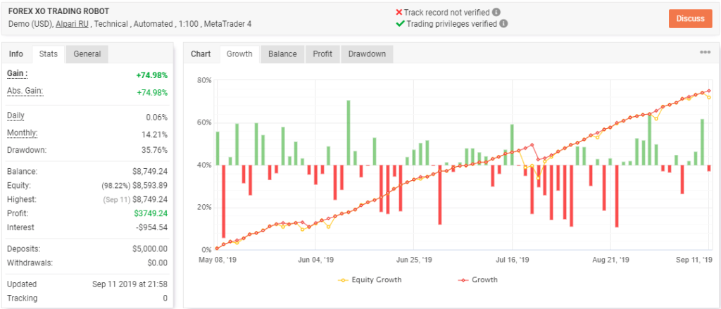 Altredo XO Robot is based on a trending trading strategy that is optimized for trading with minimal capital risks. The robot is able to smoothly increase the deposit in the short term and long term.