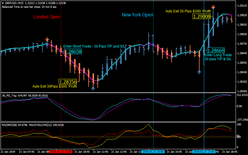 It made to place one trade per day at 1 of two specific times, namely the London or New York opening. Doing this, you will see a generated winning trade almost daily, just with the GBPUSD or EURUSD.