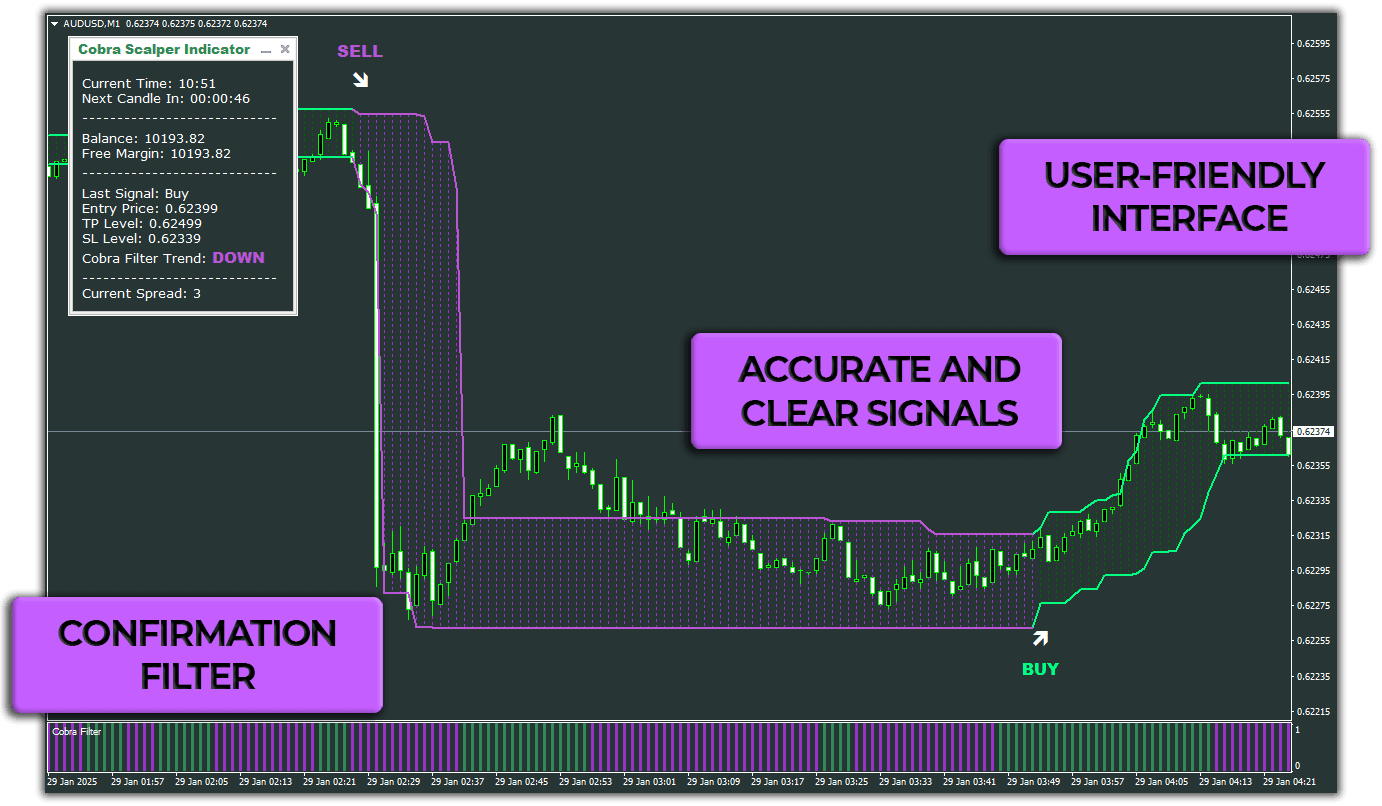 Are you searching for an easy and profitable way to make money in the Forex market? Your search ends with the Cobra Scalper! Crowned as the Best Trading Indicator of 2025, Cobra Scalper leverages a unique algorithm and cutting-edge technology to turn your trades into real money right before your eyes. Maximize your profits and minimize your risks with Cobra Scalper, and embark on your journey to financial success today!