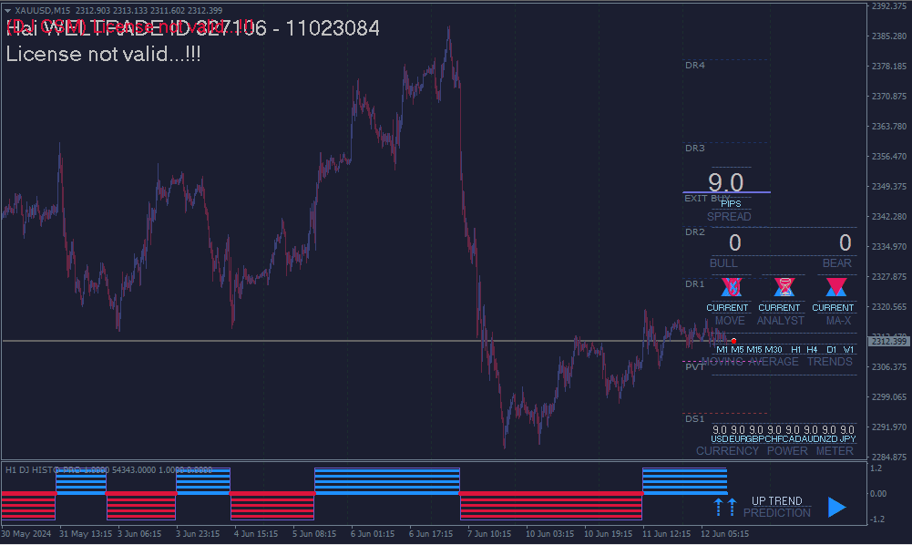 DJ CSM provides visual information on the current trend based on the analysis of more than 5 indicators that are displayed visually on the chart, you can adjust the settings of all the indicators in the input parameters. DJ CSM displays the following information in the lower right corner of the chart:Â