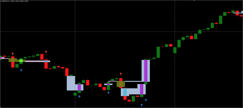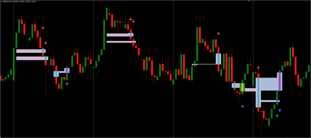 The indicator can be used on multiple timeframes, although it may be most effective when viewed in conjunction with higher timeframe trends (H1 and above) to reduce noise and false positives. Lower timeframe signals that align with the higher timeframe trend are often considered more reliable by practitioners of Smart Money techniques.