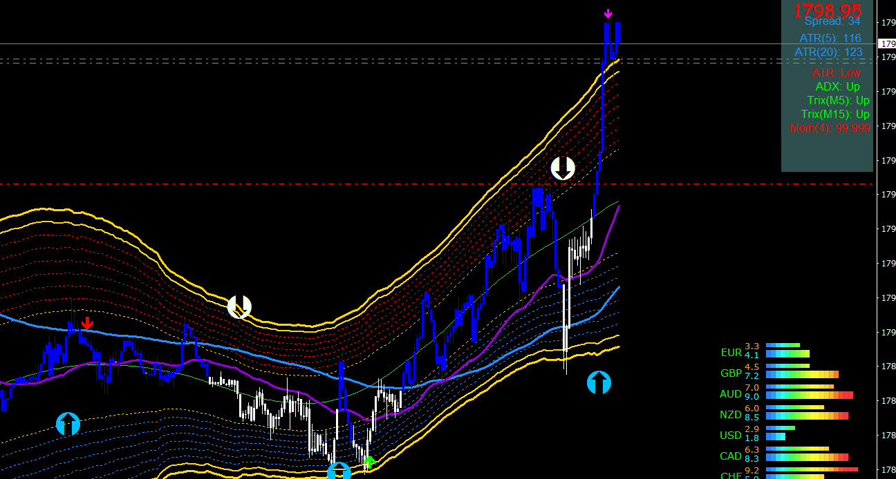 This trading algorithm built into Indicator for Scalping It can analyze and detect price trends, & determine the strength of the trend, & give you strong signals for the best opportunities for safe entry & exit trades. It is designed to think and act like some of the best forex traders in the world.