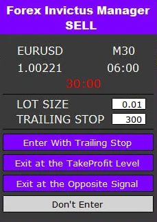 When the new signal is generated, Forex Invictus Manager pops on the screen, and all you have to do is click one button to enter the trade!