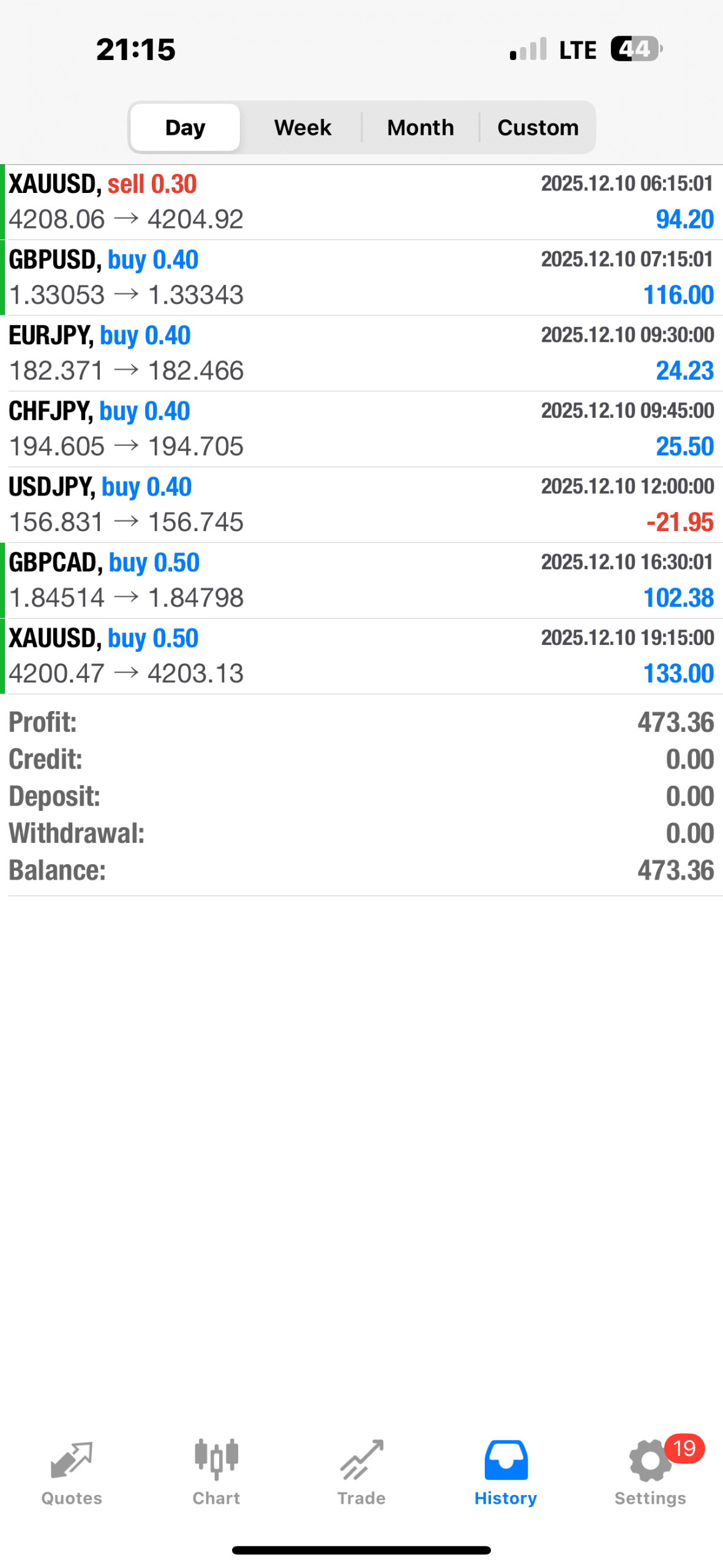I made 266 dollars of profit and lost 45 dollars. Opened trades are in plus of 190 but it doesn’t mean anything until the next signal is formed