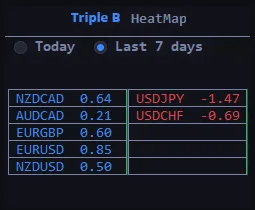 This feature allows you to know what pairs are the “hottest�ones in the current market conditions and help you spot better trading opportunities. This heat map gives you the full flexibility of choosing the instruments you are interested in and it allows you to see the data for the last trading day or the last 7 days.