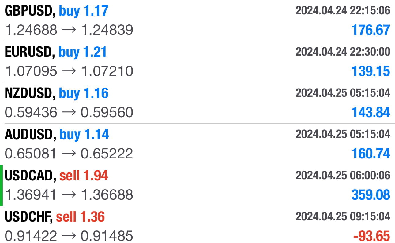 Let’s see a screenshot of your MT4 trades…