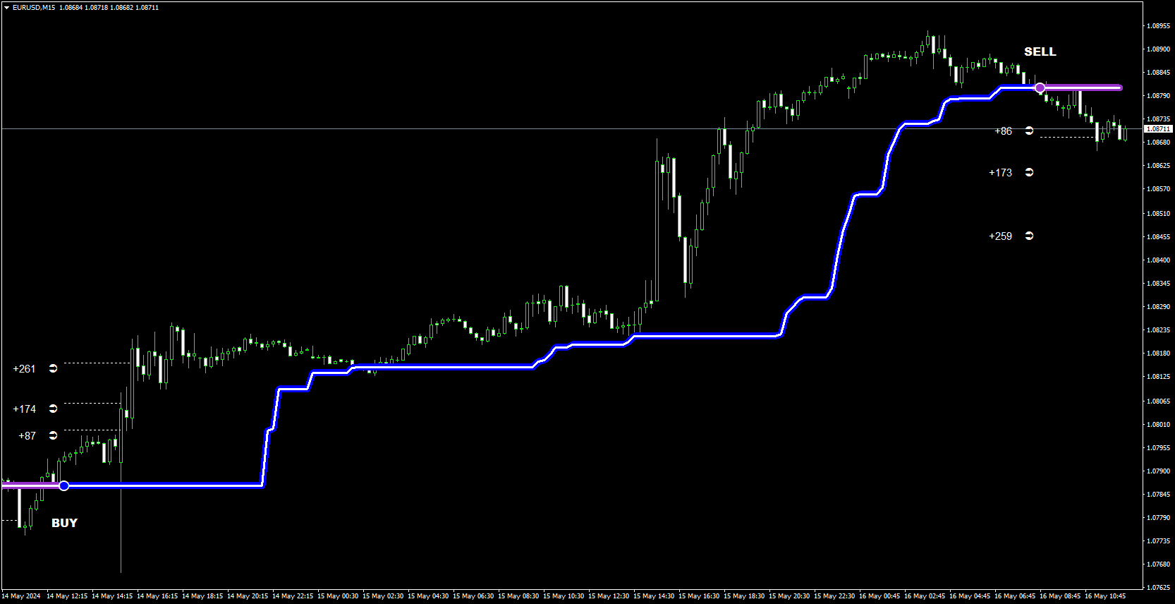 I have purchased and currently trading on EURUSD for 15 min.